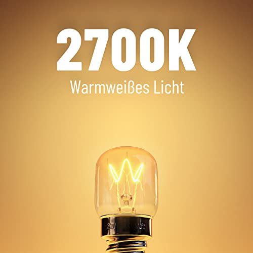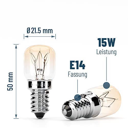 Specification: ABSINA Kleine E14-lampen, 15 W, 2 stuks hittebestendige ovenlampen tot 300 graden voor oven, grill, magnetron enz. – ovenlamp met T22-capsule, 75 lumen, 2700 K, koelkastlamp