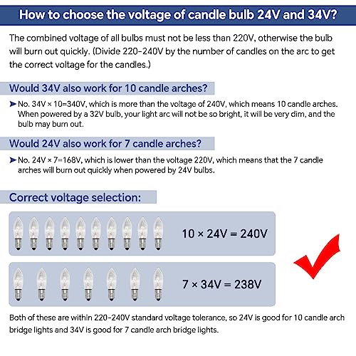 Kaarsbruglichten: 10 stuks E10 3 W reservelampen. E10 kleine schroeffitting, 30 lumen, 34 V, 1000 uur levensduur van de lamp. Controleer voor de aankoop of de lampvoet en de afmetingen overeenkomen.