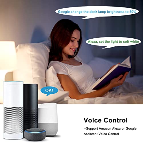 SLIMME SPRAAKBESTURING – De WiFi Alexa-lamp werkt met Alexa / Google Home, dim de helderheid, verander de kleurtemperatuur van de slimme lamp door eenvoudig spraakopdrachten te geven, “Alexa, zet het licht aan!” of “Alexa, Dim het licht 40%!”