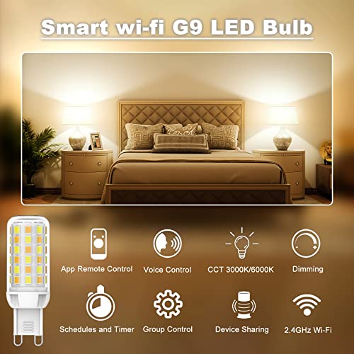【Voice &App Remote ControlVia 2,4 GHz wifi verbindt u de Smart G9 LED Light Bulb met de “Smart Life” App of “Tuya Smart” App, en zijn compatibel met Alexa en Google Home Assistant, geen hub nodig. Geef gewoon een spraakopdracht om uw licht in / uit te schakelen of te dimmen / op te helderen. Waar u ook bent, bedien uw WiFi Smart-lampen met APP op telefoons (Android 4.1 hierboven of IOS 8.0 hierboven).