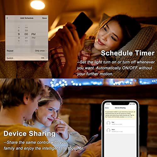 【Stel tijd en timer in】U kunt schema’s instellen voor het slimme lampje om in / uit te schakelen volgens uw dagelijkse routines. Stel de lichten in om ‘s nachts uit te doven, zodat u zich geen zorgen hoeft te maken als er lichten branden.