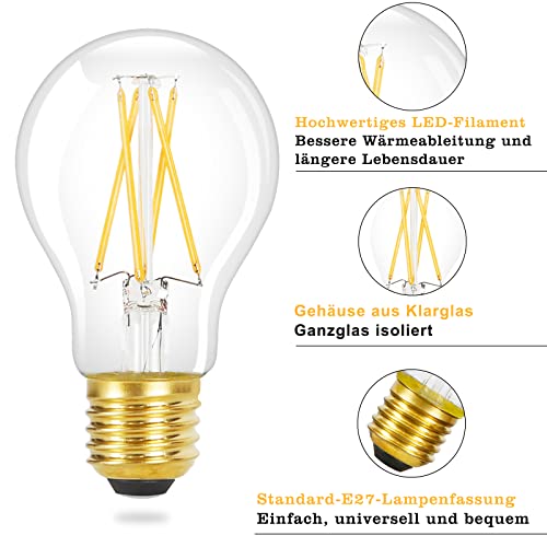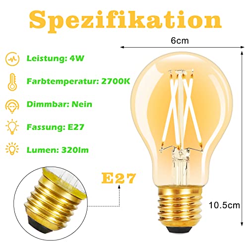 Specification: GBLY 6 stuks LED E27 lamp vintage – A60 Edison Light Bulb 2700K 4W warm wit gloeilamp filament retro glas antieke lamp energiebesparing voor hotel
