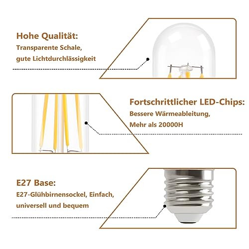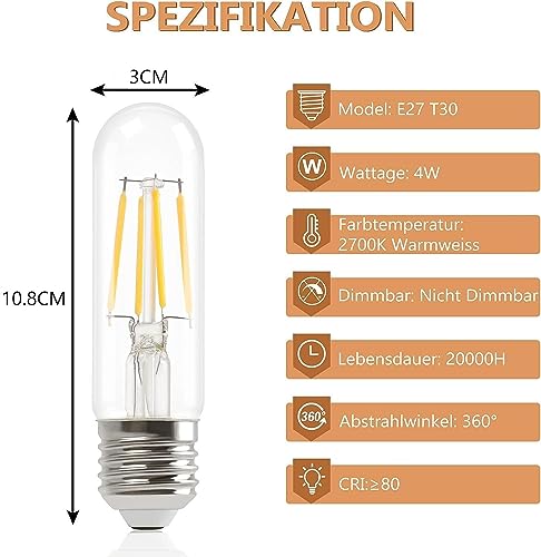 Specification: GBLY Gloeilamp E27 LED Warmwit – 6 stuks – T30 LED-lamp 4W Edison Vintage Verlichting 2700K Warmwit Licht Bol Retro Filament Energiebesparende Lamp E27 Fitting Niet Dimbaar Light Bulbs