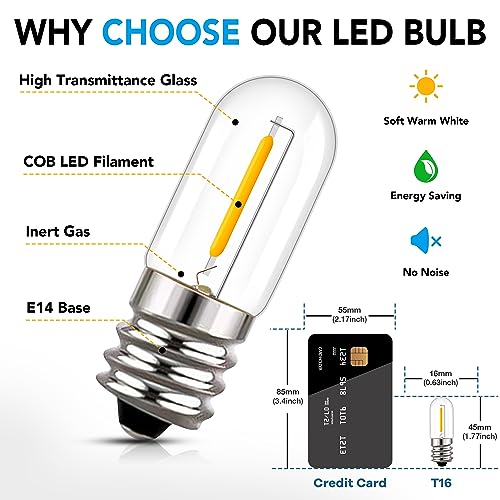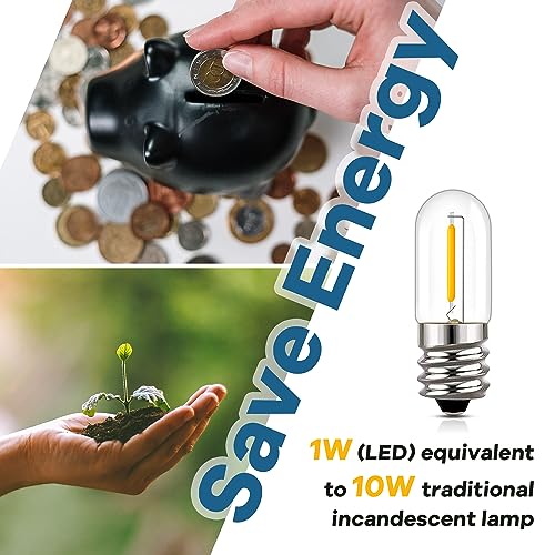 Specification: Hcnew E14 LED 1W gloeilamp T16 kleine gloeilamp E14 warm wit 2200K Mini Vintage Candelabra lamp 1w vervangt 10 watt gloeilampen, voor nacht licht tafellampen zout lampen 220V-240V, 6er-Pack