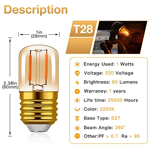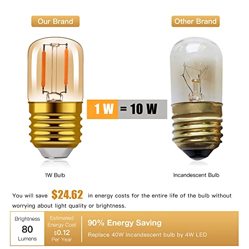 Hcnew LED Gloeilampen E27 1W 80 lumen,komt overeen met gloeilampen van 10W,Klassieke gloeilamp,Klassieke gloeilamp,2200K barnsteengloeien,Edison-schroeflampen,niet dimbaar,6 stuks