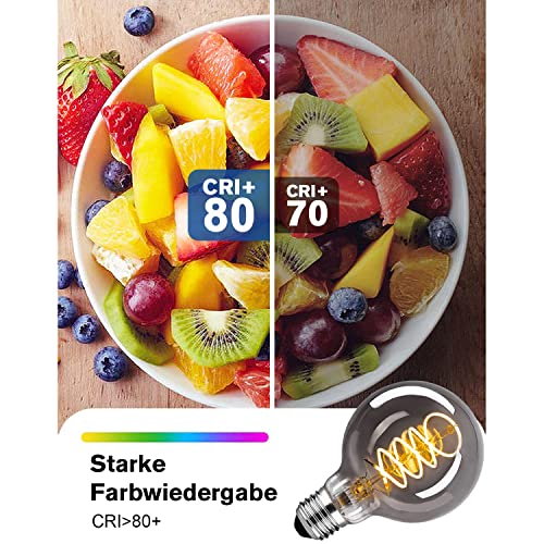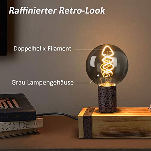 💡 【Gloeilamp E27 in rookgrijze optiek met dubbele helix LED filament】Gemaakt van rookgrijs glas en LED filament met dubbele helix structuur, heeft de E27 LED Vintage lamp een zeer aantrekkelijk, decoratief vintage design.De Edison lamp E27 Vintage verspreidt zeer aangenaam, zacht en warm licht en roept een prachtige sfeer op.