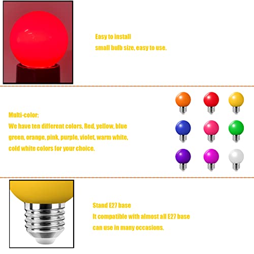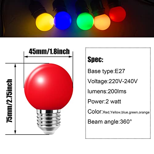 Huamu Set van 10 gekleurde gloeilampen, decoratieve gloeilampen, 2 W led G45, kleurrijke golfballampen, gloeilamp E27, gemengde kleuren, rood, groen, blauw, oranje, geel