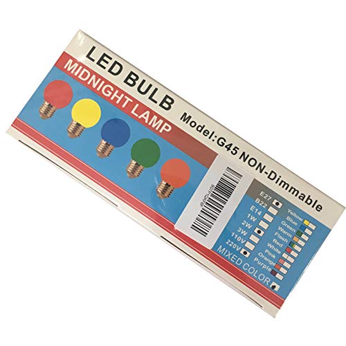 Specification: Huamu Set van 10 gekleurde gloeilampen, decoratieve gloeilampen, 2 W led G45, kleurrijke golfballampen, gloeilamp E27, gemengde kleuren, rood, groen, blauw, oranje, geel