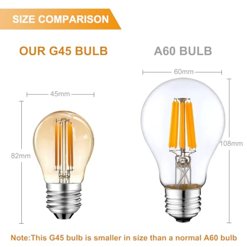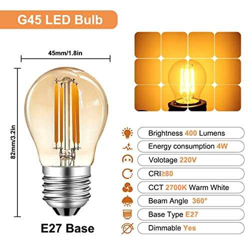 Specification: MZYOYO 4W E27 dimbare LED-lamp, E27 vintage gloeilamp, 4W G45 2700K warm wit lamp, vervangt 35W gloeilamp, lamp retro verlichting, dimbaar, amber, 6pcs
