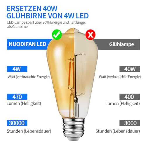 Klassiek design: NUODIFAN vintage E27-gloeilamp met innovatieve ledtechnologie, 4W G80 Edison ledlamp vervangt 40 W traditionele gloeilamp, standaard E27-fitting, 470 lumen, 2700 K warm wit, met een gemiddelde levensduur van 30.000 uur.