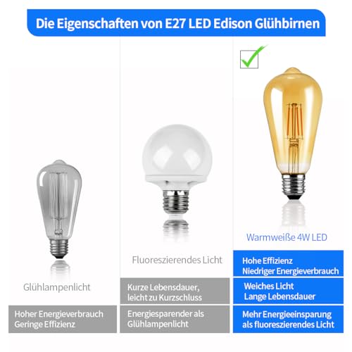 Specification: NUODIFAN Edison Vintage gloeilamp, 3 stuks Edison ledlampen, warm wit, E27, retro gloeilamp, ideaal voor nostalgische en retro verlichting in huis, café, bar enz