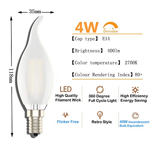 Specification: Phoenix 4WLED E14 Dimmable Candle Bulb, 40 W Equivalente, Warm White 2700K, Small Edison Screw Candle Light Bulbs, Pack of 12