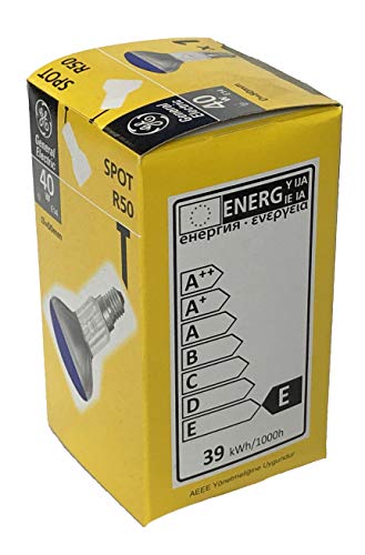 Lamp / lamp reflectorlamp R50 NR50, fitting E14 40 watt reflectorlamp van GE General Electric in blauw, totale lengte ca. 87 mm, maximale diameter ca. 50 mm.