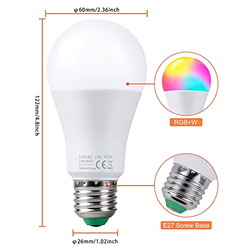 Specification: REYLAX Gekleurde Bollen LED RGBW Lamp E27 10W, Dimbare Edison Gloeilampen Dual Geheugen 12 Kleuren LED-lampen, Draadloze Afstandsbediening Inbegrepen, voor Thuis Bar KTV Partij